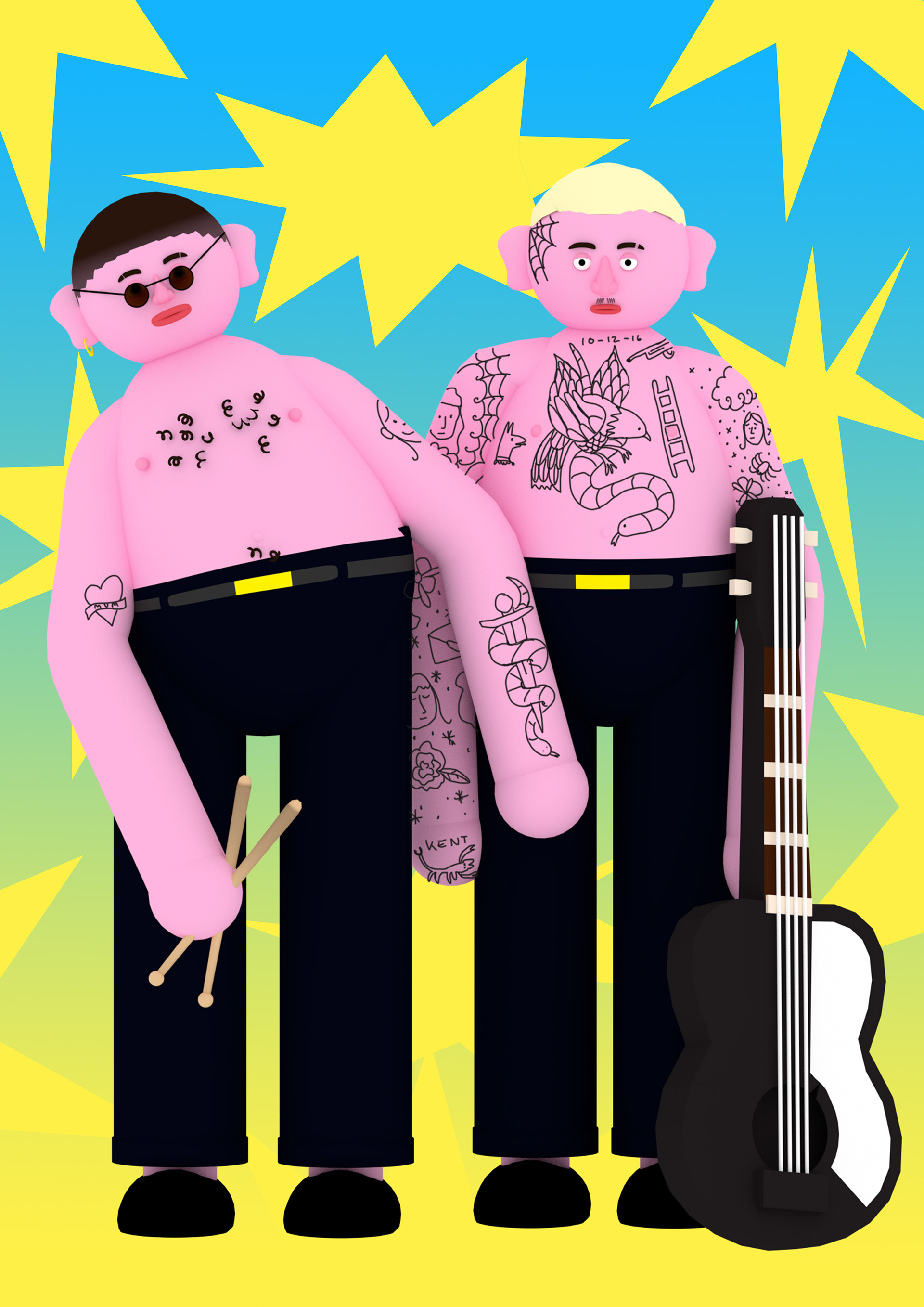 Illustrations of the bands 'Slaves' and 'Swim Deep' for issue 22 of So Young Magazine.