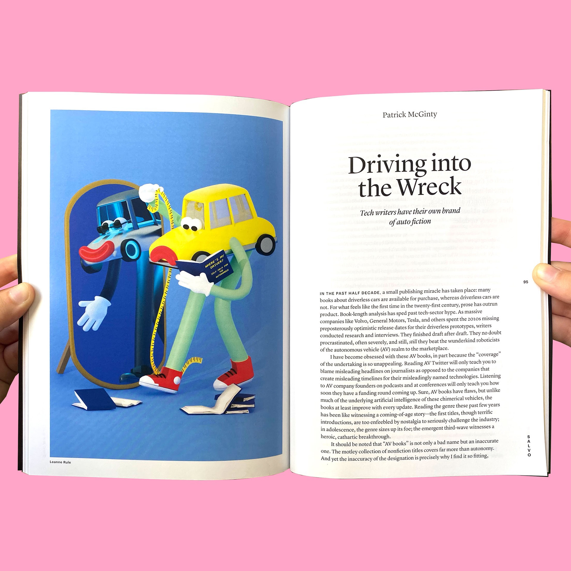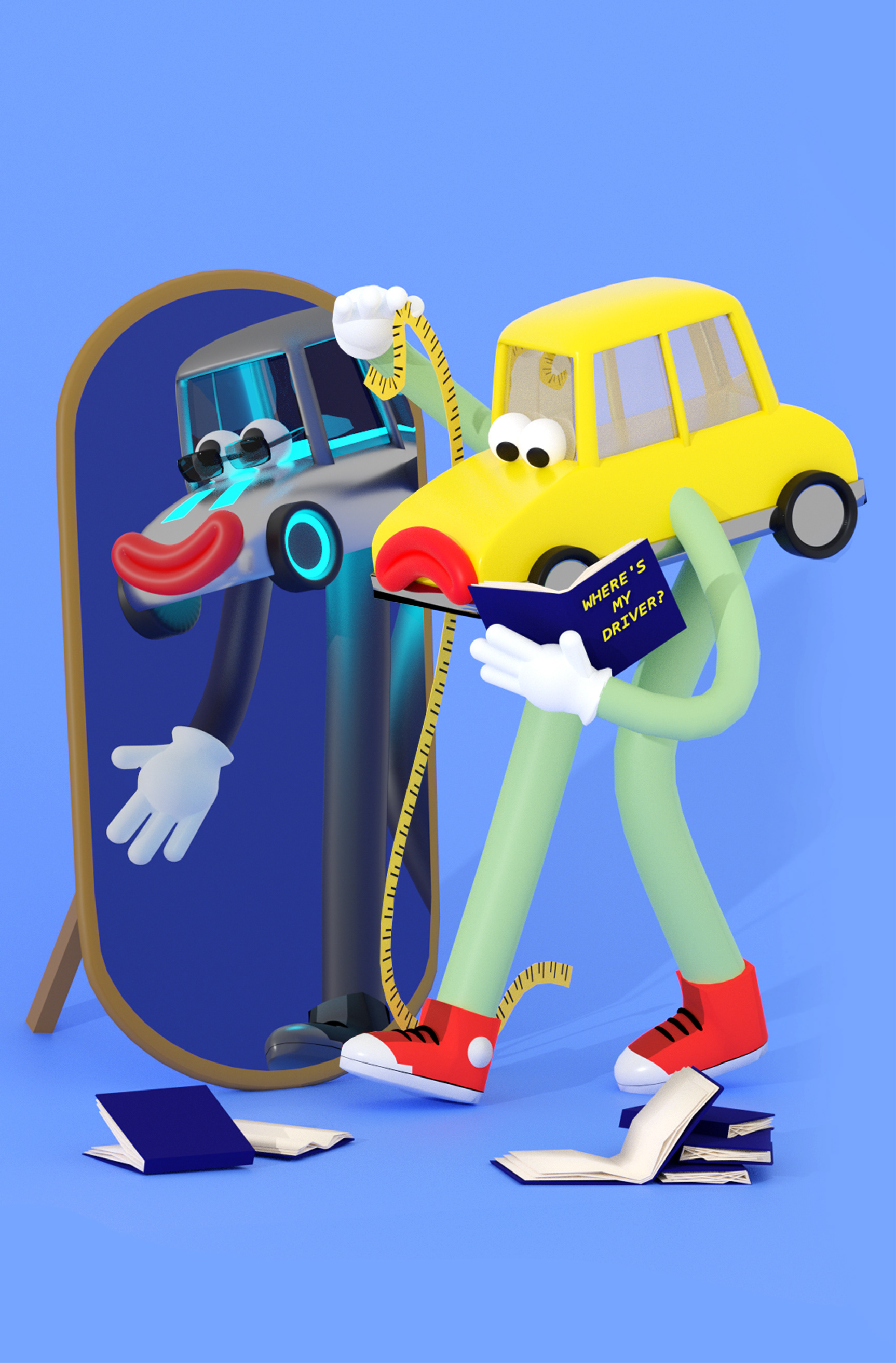 Editorial illustration about autonomous cars, and if they live up to decades of hype. Illustration for issue 52 of the Baffler.