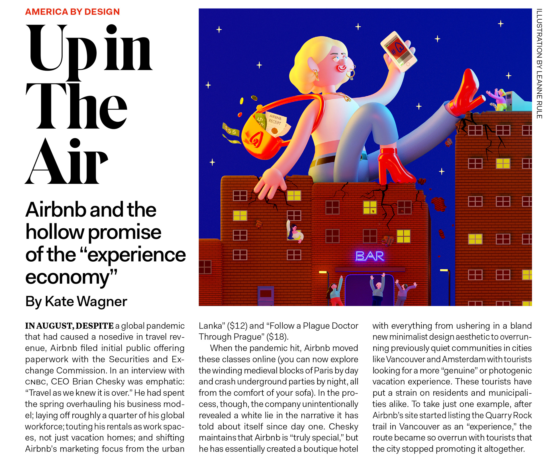 Editorial illustration for the November 'Vote' issue of The New Republic, for an article about Air B&B. You can read the full article